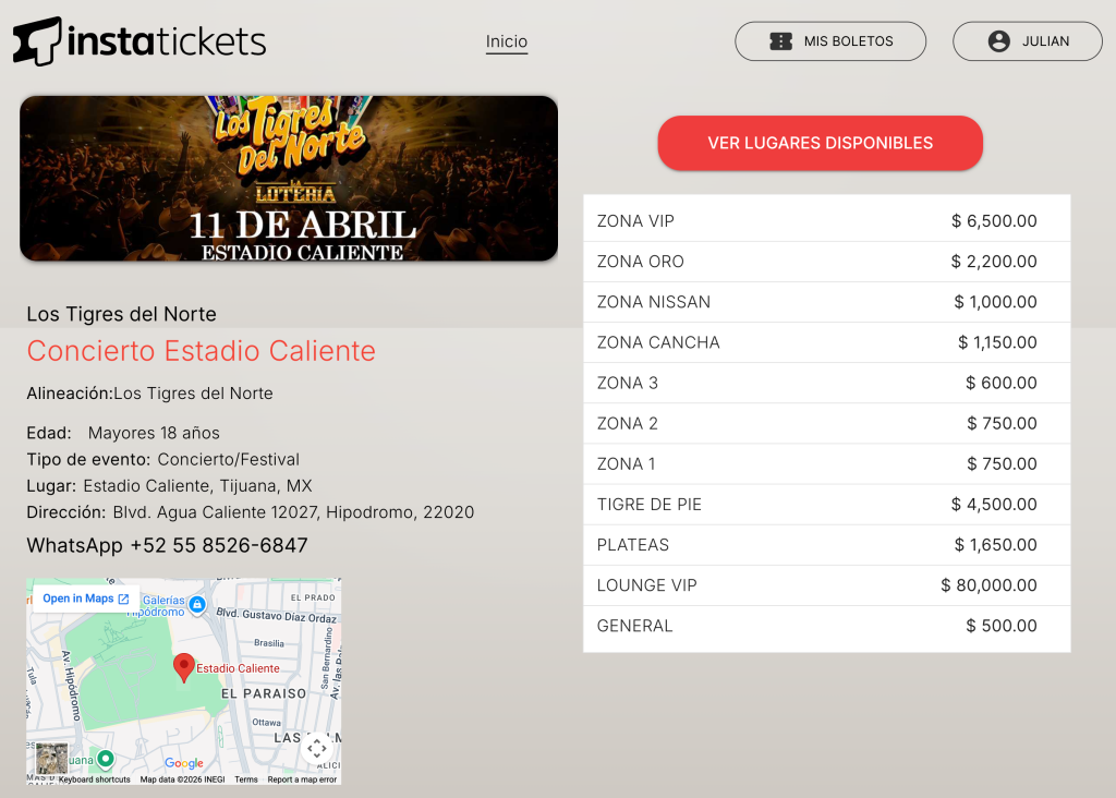 Por ejemplo, la Zona VIP tiene un precio de $6,500 pesos, mientras que Tigre de Pie alcanza $4,500 pesos.