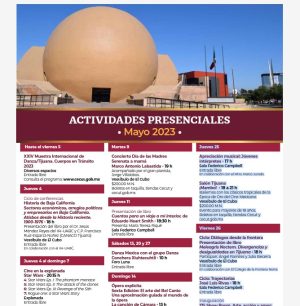 Conoce la cartelera cultural del Centro Cultural Tijuana (CECUT) para mayode 2023. Actividades Presenciales Hasta el viernes 5 XXIV Muestra Internacional de Danza/Tijuana. Cuerpos en Tránsito 2023 Diversos espacios Entrada