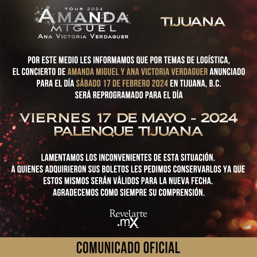 Se presentará Amanda Miguel y Ana Victoria Verdaguer en Tijuana el próximo viernes 17 de mayo a las 8:00 pm en el Palenque Parque Morelos como parte del Tour Siempre te Amaré, Un Homenaje a Diego Verdaguer.