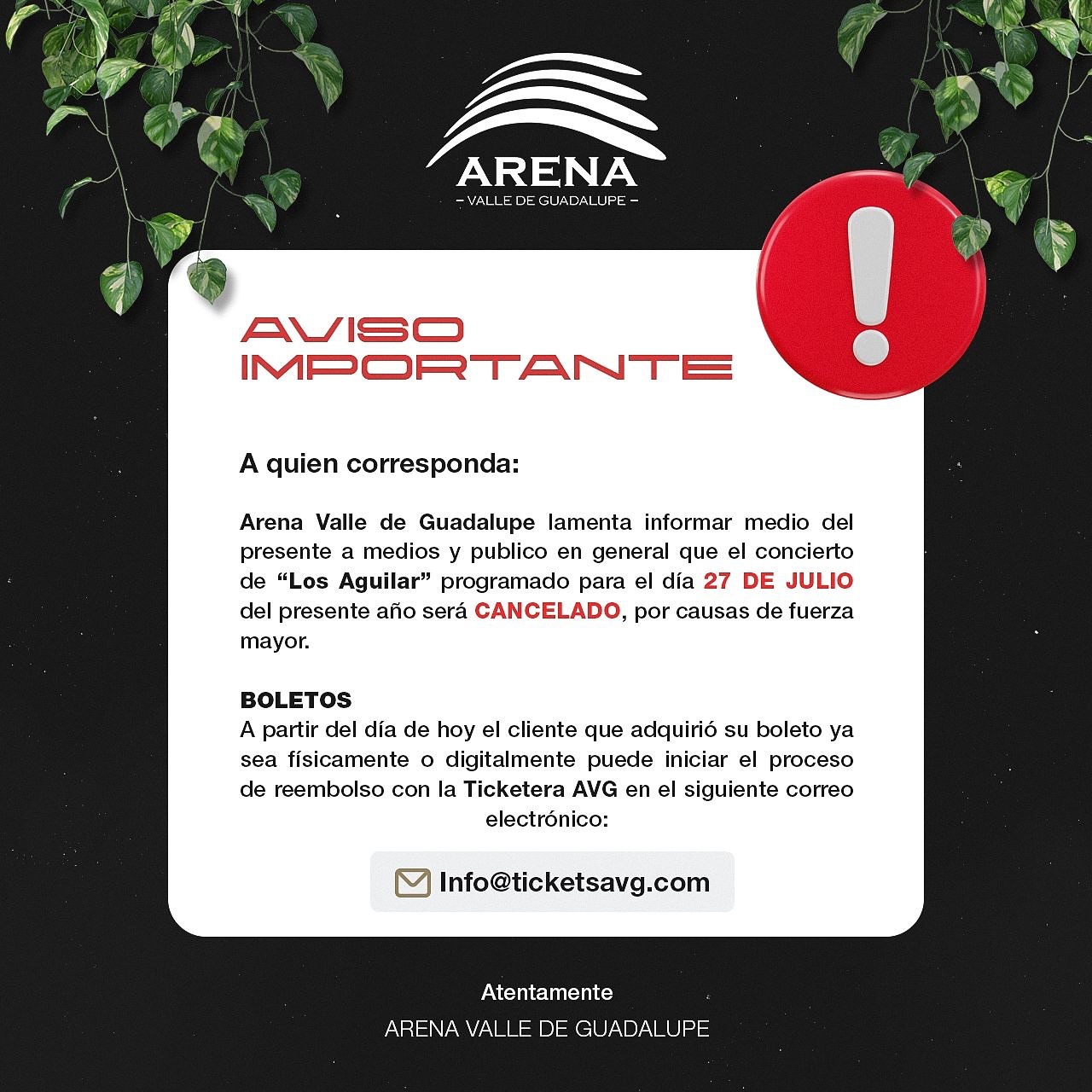 Inicio Eventos - Tijuana Eventos Conciertos Los Aguilar en Valle de Guadalupe 2024 CANCELADO Los Aguilar en Valle de Guadalupe 2024 CANCELADO Evento Cancelado Pepe Aguilar, Ángela Aguilar y Leonardo Aguilar, Los Aguilar se presentarán en Valle de Guadalupe el próximo 27 de julio de 2024 en la Arena Valle de Guadalupe. Boletin Cancelacion concierto Los Aguilar en Valle de Guadalupe 2024 Clasificación: Sin especificar Etiquetas: Ángela Aguilar, Cancelado, Conciertos en el Valle, Los Aguilar, Los Aguilar en Valle de Guadalupe, Pepe Aguilar, Ranchera, Regional Mexicano El evento está terminado. Fecha Saturday 27 July 2024 Finalizdo! Hora 8:00 am - 6:00 pm Etiquetas Cancelado Categorías Conciertos Artistas Ángela Aguilar Ángela Aguilar Pepe Aguilar Pepe Aguilar Compartir este evento https://tijuanaeventos.com/AguilarVG24 Copiar