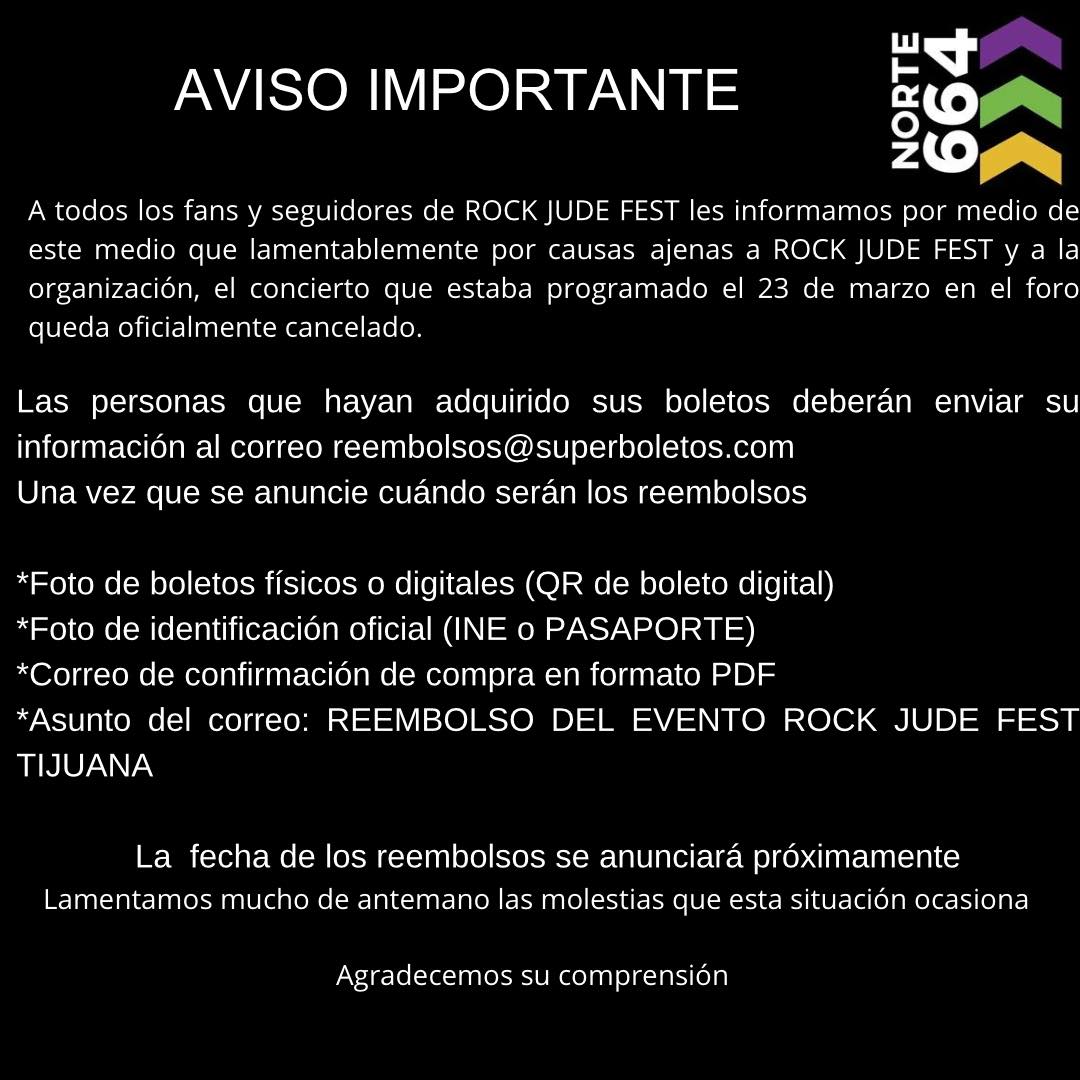 Reembolsos del Rock Jude Fest en Tijuana